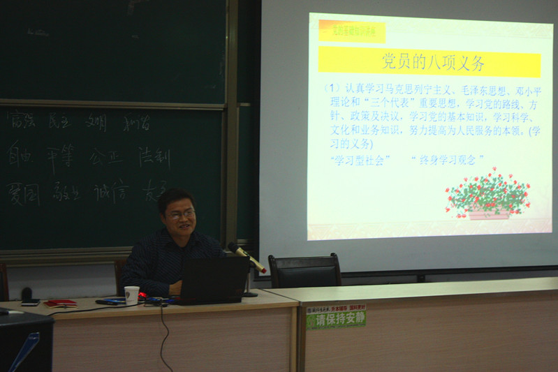 在接下来进行的第七讲党课中,张国昌先后讲了党员的八项义务和八项权利两项内容。这两项内容是党课的重点,在讲课过程中张国昌不断的提出一些问题来让学生思考并与学生互动讨论,通过列举古今一些例子来加强分析,提高了讲课效果。以此,学生可以更好的理解讲课内容。