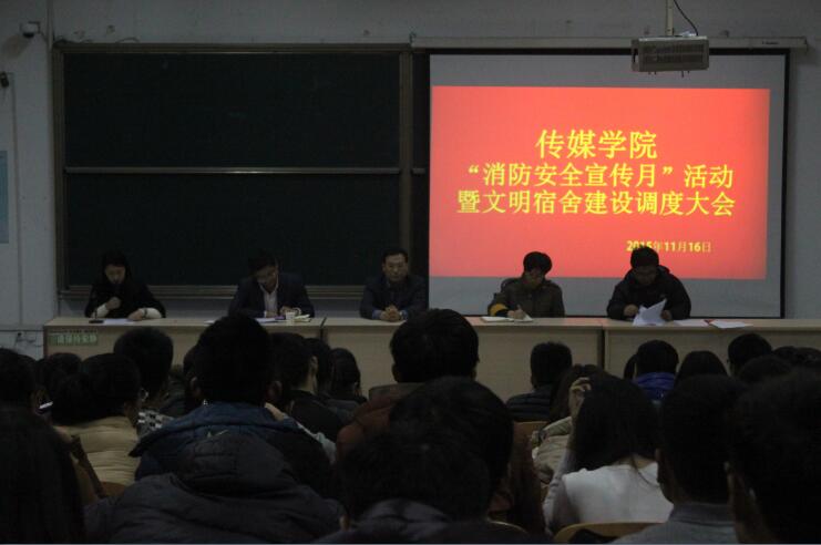 11月16日,传媒开云(中国)官方“消防安全宣传月”活动暨文明宿舍调度大会于224教室举行。我院党委副书记冯炀、高级辅导员赵小情、学工办主任吴布林、团委书记焦健及全体辅导员老师出席活动。