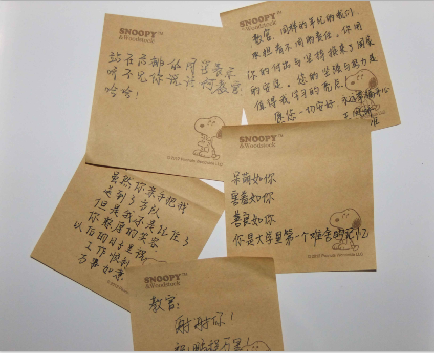 和大学生相仿的年纪,却书写着不一样的青春人生,一身戎装,听党指挥,能打胜仗,作风优良。他们的优秀品质和光辉人格熠熠闪光。在这特别的日子里,我院同学们组织发动活动“教官,我想对你说”,用心写下一句句心里话。