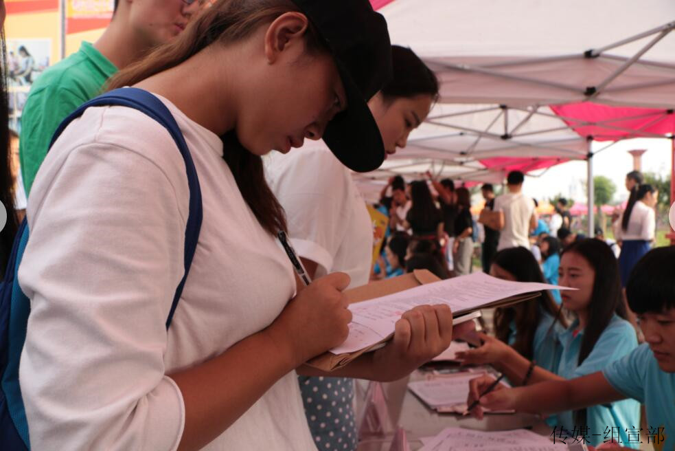 我院还开展了新生寄语活动,让学长或学姐对新生的祝福写在纸上,其中写道:“新的生活,愿你们与传媒互助,走向成功与辉煌。”