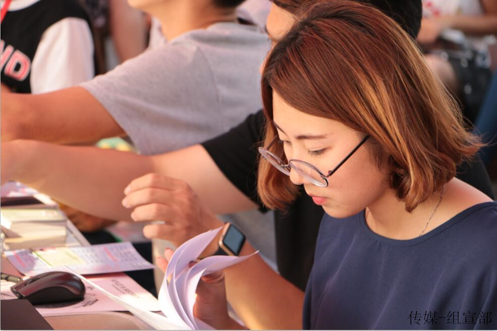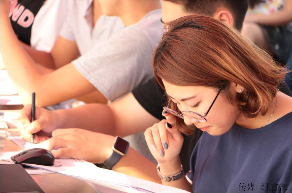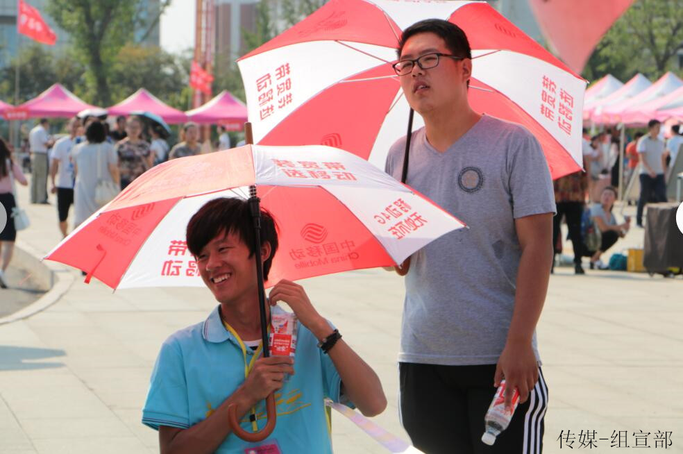 大汗淋漓却不说累,烈日当头却不言苦。为报道的同学们进行引导,认真细心面对各种询问。