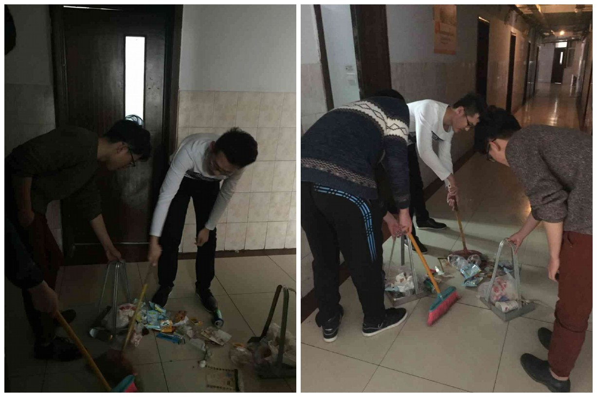 我院社团部成员主动帮助楼管阿姨,叔叔打扫宿舍卫生,清理楼道垃圾,打扫走廊。同学们与宿管阿姨叔叔聊聊日常,也进一步了解了他们平时的工作并号召大家平时注意个人卫生,尽量把垃圾送到外面的垃圾桶里。