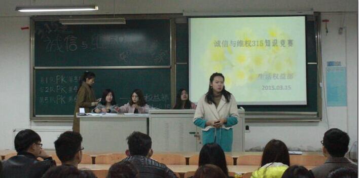 3月15日晚,由我院学生会生活权益部主办诚信与维权315知识竞赛在228教室举行。2015级各班代表队参加了竞赛。竞赛由生活权益部副部长郭书君主持。