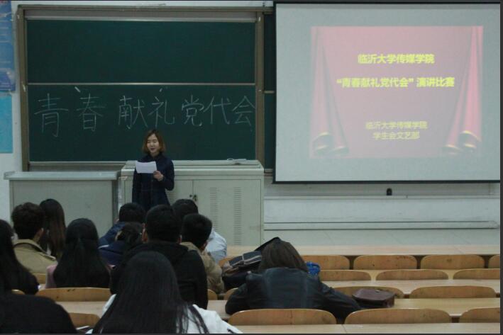 活动开始,同学们依次上台朗诵自己准备好的文章,一句句党的赞颂回荡在教室中。同学们慷慨激昂,有时不乏配上手势,让人听了心里为之一振,肃然起敬。。其中,播音与主持艺术3班的高睿作为第一位选手,进行了题为《青春誓言》的演讲,语调激昂,带动了整个活动的氛围。