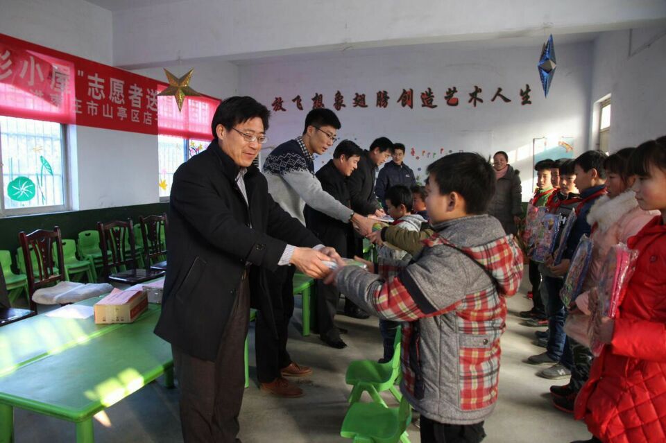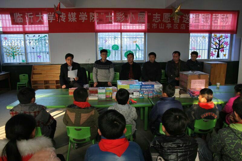 同时我院通过联系校友,得知马勇任职枣庄市山亭区店子镇龙虎村村官,而此地留守儿童情况相对严重,这件事引起传媒学子的广泛反响,大家纷纷捐资捐物。由我院学生会女生部举办的“七彩小屋”志愿者送温暖活动走进枣庄市山亭区店子镇龙虎小学,龙虎村村官马勇莅临现场。