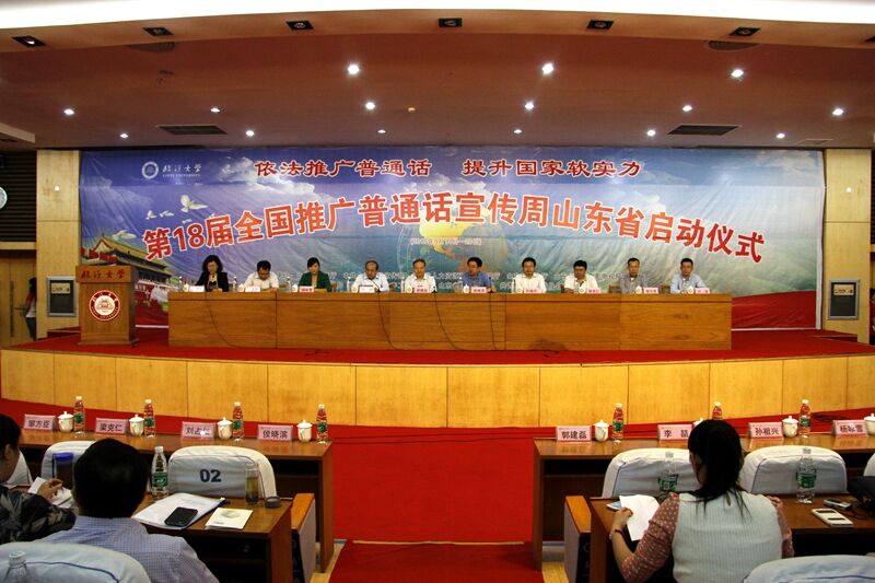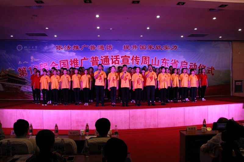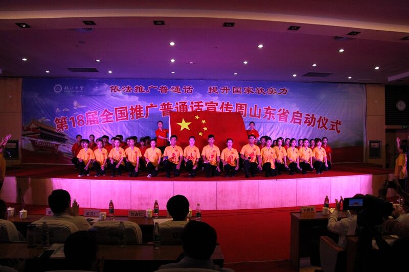 9月15日上午9时,第18届全国推广普通话宣传周山东省启动仪式在我校沂蒙大讲堂隆重举行。山东省语言文字工作委员会秘书长、山东省教育厅党组成员、副厅长郭建磊,开云网页版党委书记李喆,临沂市副市长、临沂市语委主任侯晓滨出席启动仪式并讲话。仪式上,我院展演百人诵读《青春中国梦》。我院党委书记李伟、党委副书记冯炀、团委书记焦健、播音与主持艺术专业教研室主任马静亲临现场指导学生诵读。