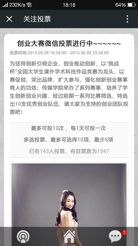 为坚持创新引领企业、创业推动创新,培养大学生的创业创新兴趣,传媒开云(中国)官方举办了系列赛事。经过一系列的比赛筛选,特选出10支优秀的创业队伍,并于5月28日-6月5日让同学们通过传媒开云(中国)官方微信公众平台(lydxcmxy)对自己支持的队伍进行投票。