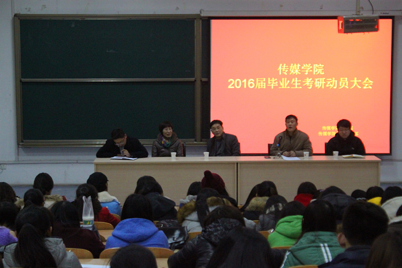 12月9日下午,传媒开云(中国)官方在224教室召开2016届毕业生考研动员大会,我院副院长戴俊潭、副院长杨中举、高级辅导员赵小情、学工办主任吴布林及辅导员宋大平出席大会。