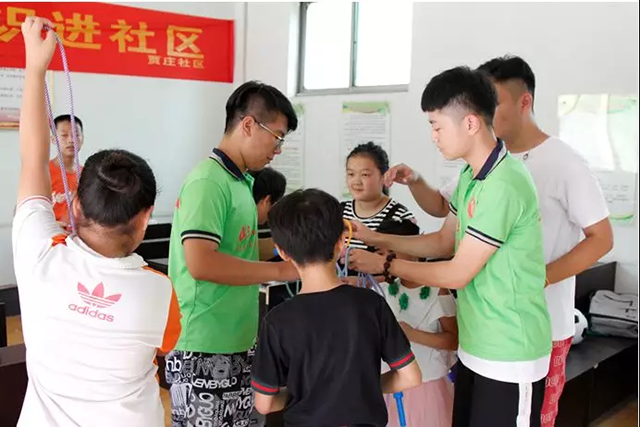 送来的学习用品和体育用品,礼物虽轻,情深意重。党委副书记王钧和团委书记焦建与孩子们进行了亲切的交谈,希望他们要从小养成的良好习惯,不管是学习还是在生活中,保持积极向上,劳逸结合,加强体育锻炼,牢记梦想。孩子们聚集在村委会的活动室里,团队成员教孩子们唱歌、画画,并一起玩游戏,孩子们学习积极性高涨。同时我们还教孩子学习新的知识,辅导暑假作业等。