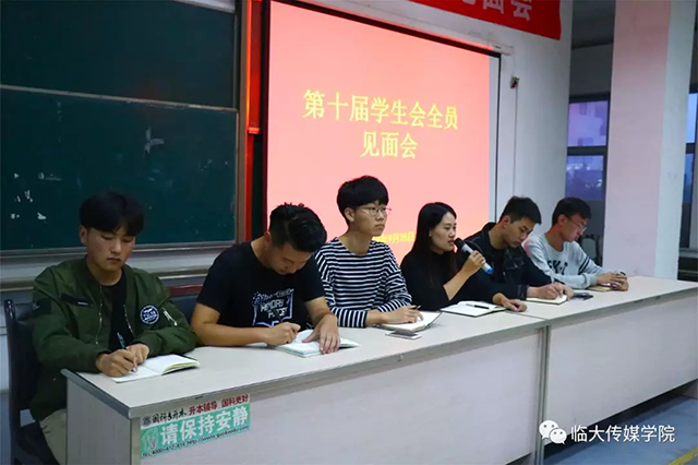 为欢迎2018级新成员加入学生会、促进学生会各部门工作顺利开展,9月25日下午,我院召开第十届学生会全员见面会。团委及学生会指导老师公衍梅,学生会主席团,各部门部长、副部长以及18级实习干事参加。