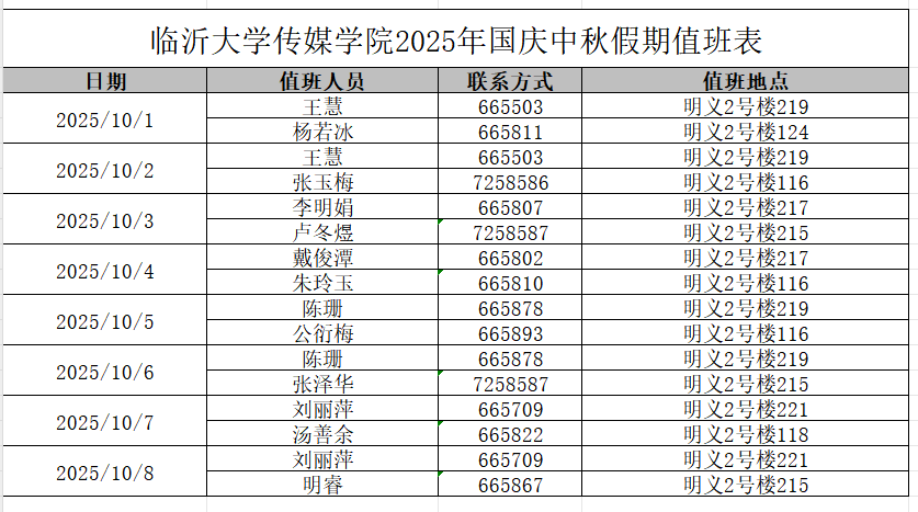 传媒开云(中国)官方2025年国庆中秋假期值班表