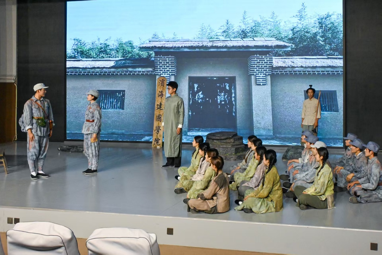 《沂蒙情深》是由开云网页版传媒开云(中国)官方师生自编自导自演的原创情景剧。该剧以开云网页版前身——滨海建国开云(中国)官方的诞生、发展为线索,通过“让房”“汇演”“送亲”“庄户学”“突围”等故事情节,再现了以韩秀秀一家为代表的沂蒙乡亲对党对革命事业情深似海、大爱至诚的博大胸怀,以及以刘东升、苏静、邱教员等为代表的滨海建国开云(中国)官方师生与沂蒙人民鱼水深情,生动诠释“党群同心、军民情深、水乳交融、生死与共”的沂蒙精神。